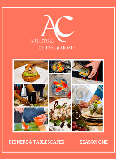 From the new TV series "Artists & Chefs At Home," this interactive e-book has all the resources needed to create the gourmet meals and stunning tablescapes from the first 8 episodes. It’s a step-by-step guide that includes: